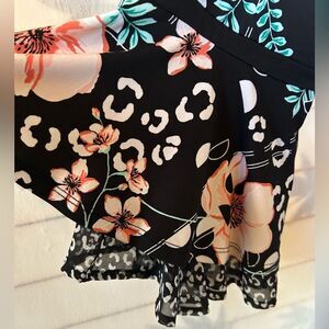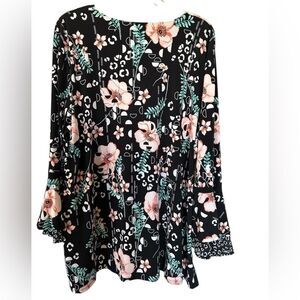 JM Collection Black Floral Ruffle Sleeve BlouseTunic XXL