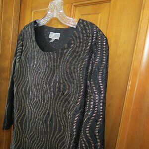 JM Collection Black & Gold 3/4 Sleeve Top Size Petite Medium
