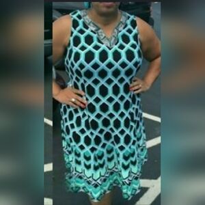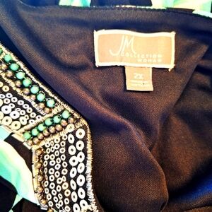 JM Collection Black Green Sleeveless Geometric dress Size 2X Very Good Condition