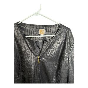 JM Collection Black Snakeskin Faux Leather Zip Jacket Stretch Size L City Chic