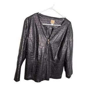 JM Collection Black Snakeskin Faux Leather Zip Jacket Stretch Size L City Chic EUC smoke free dog friendly home classic classy elegant trendy cold weather casual measurements are approximately 22” bust and 24” length bin 52