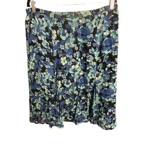Fit and flare design with ruffle, bottom, side zip, and button closure, straight front band, elastic back band, fully lined.