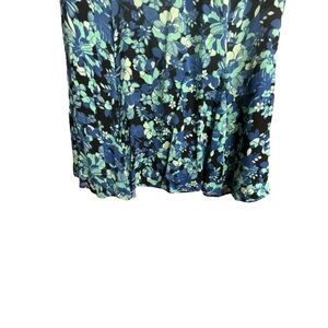 Fit and flare design with ruffle, bottom, side zip, and button closure, straight front band, elastic back band, fully lined.