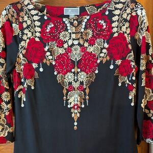 JM Collection Black and Blue Sheath Dress with Crew Neck
