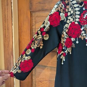 Elevate your evening look with this elegant sheath dress from JM Collection, designed for a cocktail night out. Featuring a classic crew neck and stylish cuffed 3/4 sleeves, this dress combines sophistication with comfort. The black and blue color palette adds a timeless touch to its sleek silhouette.