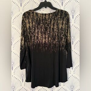 Chic black blouse with gold shimmer details. Ideal for evening wear.