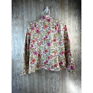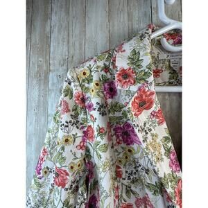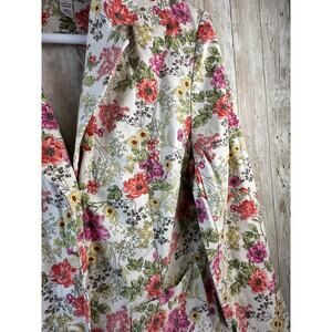 JM Collection Blazer Jacket Women's 12 Cream Green 3 Button Stretch -Button front two hand pockets, unlined, notched lapel, stretch long sleeve AOP floral cottagecore