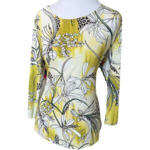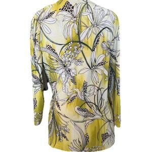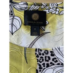 JM Collection Blouse S Yellow Flowers Texture Botanical Tropical Resort Aloha