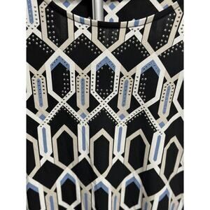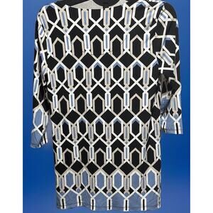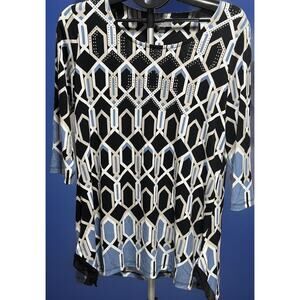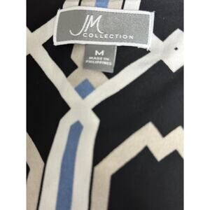 JM Collection Blouse Top 3/4 Sleeves Blue Black Geometric Print Size Medium