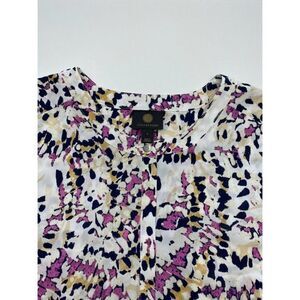 JM Collection Blouse Top Large Women's Artistic Print Pleated-Back NEW