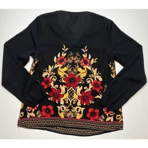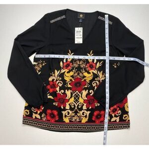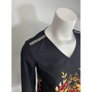 JM Collection Blouse Top Petite Small Black Women's Floral Sparkle NEW