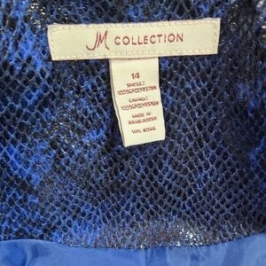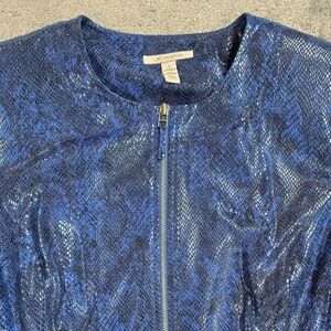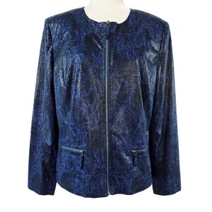 JM Collection Blue Faux Snakeskin Embossed Collarless Zip Jacket