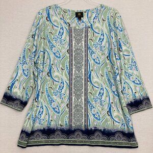 JM Collection Blue Green Floral Stretch Knit 3/4 Sleeve Comfy Top XL