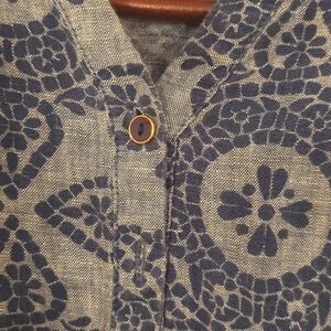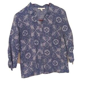 JM Collection Blue Linen Pattern Button Up Lightweight Jacket Shirt 14 Petite