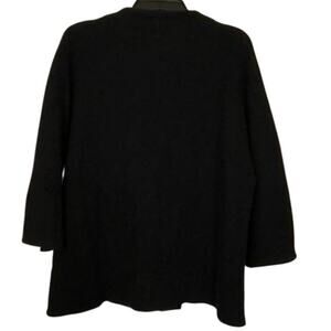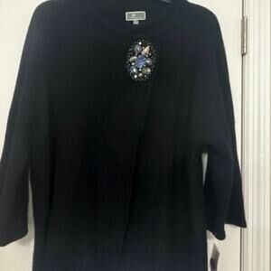 JM Collection Boiled Wool Sweater Jacket Black Embellished Broach Closure L NWT