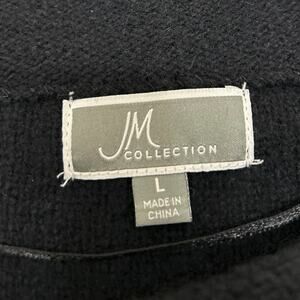 JM Collection Boiled Wool Sweater Jacket Black Broach Quiet Luxury L NWT