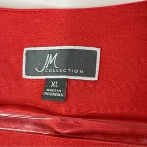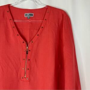 JM Collection | Bright Coral Linen Blend 3/4 Sleeve V-Neck Zip Snap Top Women XL