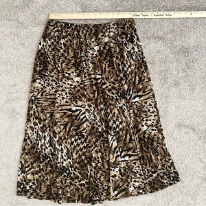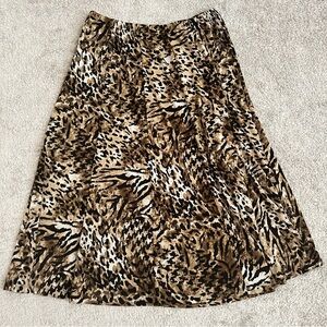 JM Collection Brown Animal Print Skirt – Size L, Flared, 30” Long, Stretch Waist