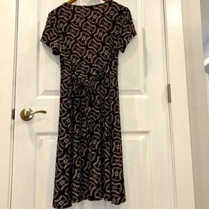 Chic geometric patterns. Short sleeves. Comfortable and stylish. Dark brown with white design