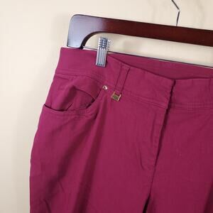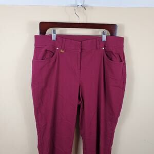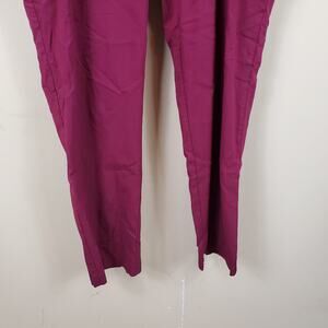 Pre-owned condition with minor staining on the front. Please see photos. Size 14. Color burgundy. Mid rise colored jeans. Slimming elastic waist. Straight leg.