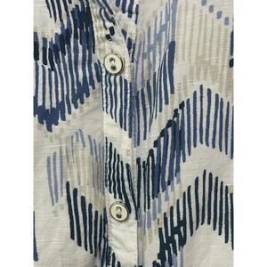 JM Collection Button Up Linen Blouse Blue White Print Pattern Travel Summer