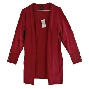 JM Collection Button-Cuff Cardigan Red Star Garnet M