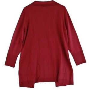 Layer on sleek style with JM Collection's cardigan. Open neckline and front; no closures Long sleeves with button cuffs Pockets at front Hits at thigh Rayon/polyester Machine washable Imported Web ID: 2918600