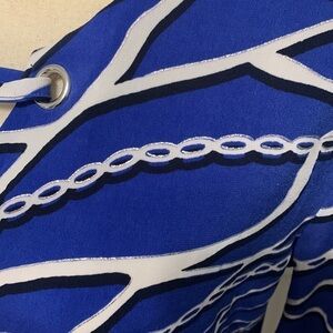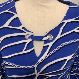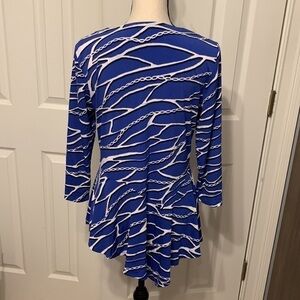 NWT Chain print tunic. V neck with grommet detail. 3/4 sleeve. Long and flowing. Point hem. Size M 26” L & 19” PTP Polyester/Spandex