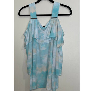 Super beachy vibes with this cold shoulder blouse. 95% Polyester 5% Spandex