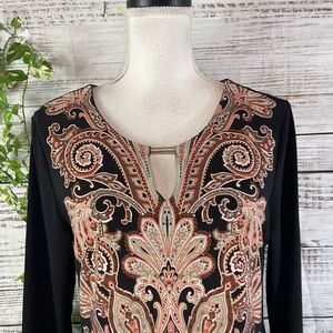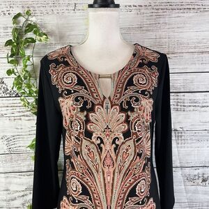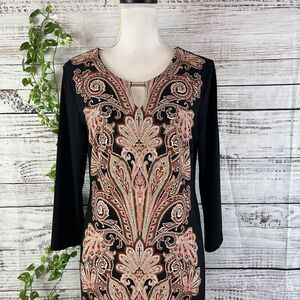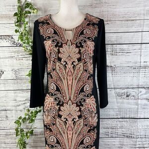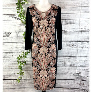 JM Collection DRess size Medium black Brown Paisley Straight Sheath Stretch Knee