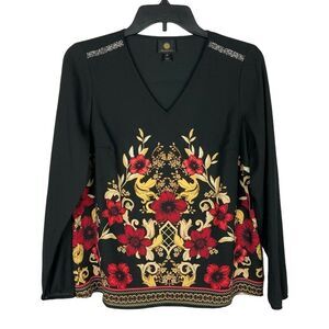 JM Collection Delilah Printed Embellished Top Deep Black XL
