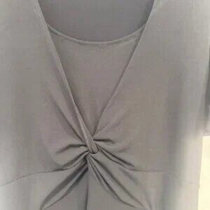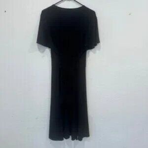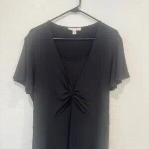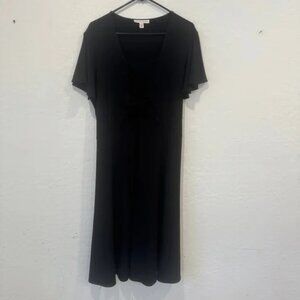 JM Collection Dress Womens 1X Black V-Neck Midi Twisted Neckline Modest Capsule
