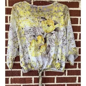 JM Collection Embellished Floral Knotted Blouse with Sheer Sleeves Size Medium