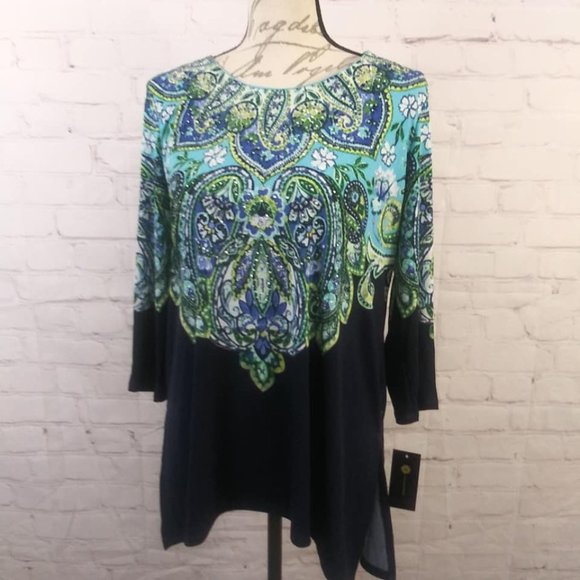 JM Collection Embellished Tunic Style Top Sz S NWT