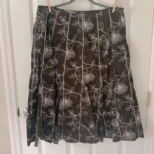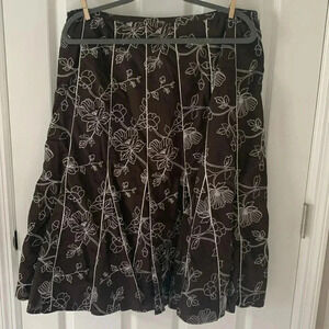 JM Collection Embroidered Skirt Size 14 Chocolate Brown and White