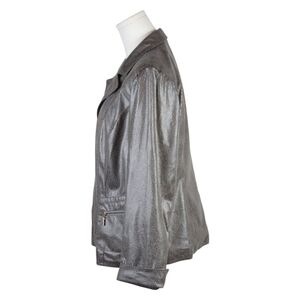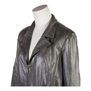 JM Collection Faux Leather Snakeskin Moto Jacket Gray Metallic Size 10