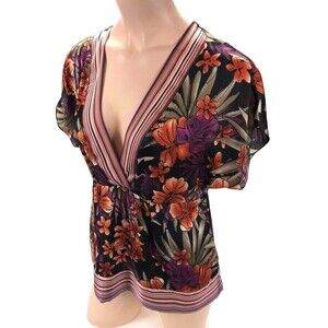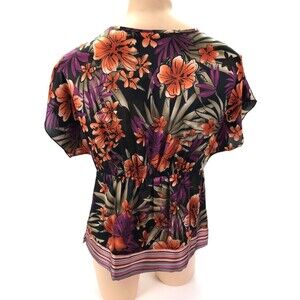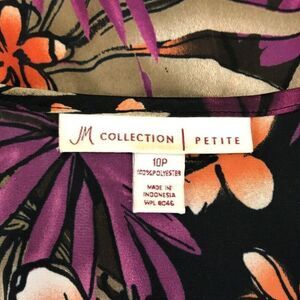 JM Collection Floral Flower Multi-Color V-Neck Blouse Shirt Womens Petite 10 P