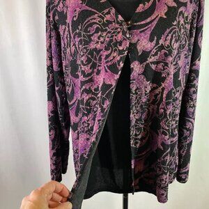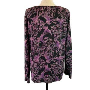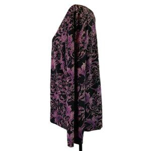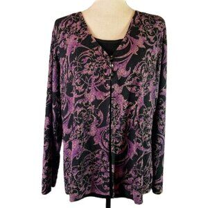 JM Collection Floral Overlay Top Purple Black Long Sleeves Relaxed Fit Size XL