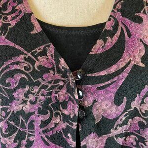 Elegant purple and black floral overlay cardigan lined with black tank sewn in front