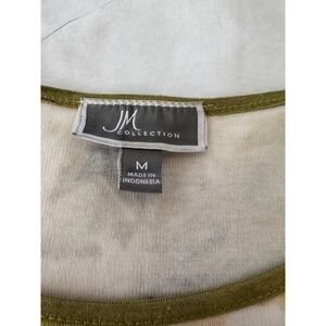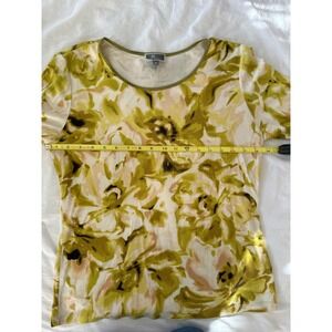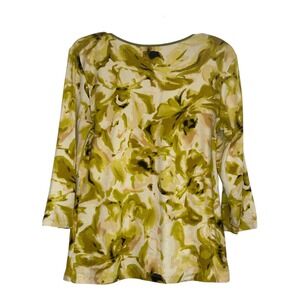 JM Collection Floral Print Top 3/4 Sleeve Crew Neck Green Beige Size M