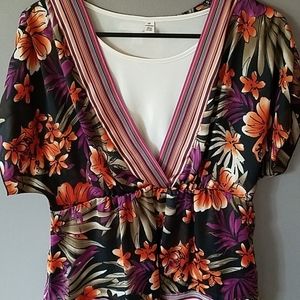 Beautiful layered floral dressy top. Cream under tank built into floral top. Both are 100% polyester. Size 10P. Fits like an average medium. In perfect condition.