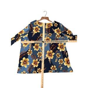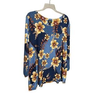 JM Collection Floral Tunic Blouse Long Sleeve Stretch Blue Plus Size 3X NEW