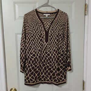 JM Collection Giraffe Print V-Neck Tunic Top Womens M Bohemia