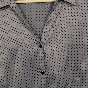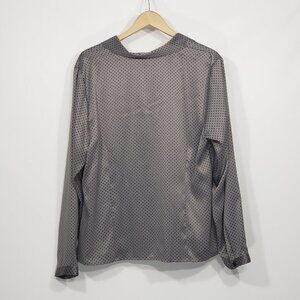 JM Collection Grey & Black Polka Dot Button Down Silky Blouse Size 18