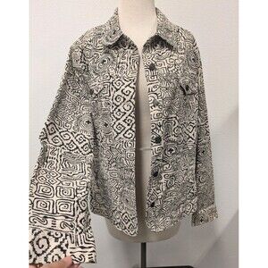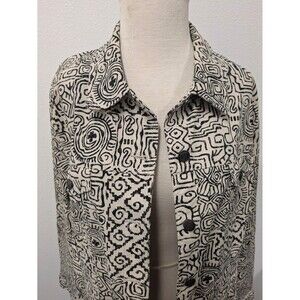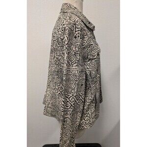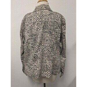 JM Collection Ivory Black Aztec Geometric Canvas Jacket sz XL Block Print