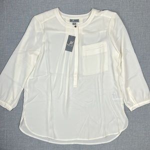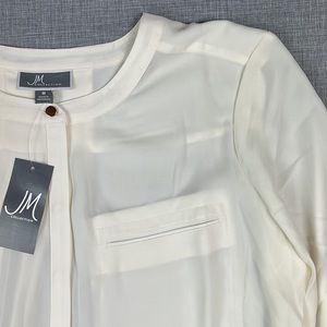 JM Collection Ivory Pleat-Back Semi Sheer Blouse Size Medium