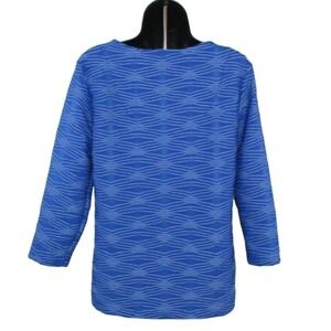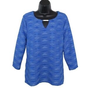 Effortlessly stylish, this JM Collection top features shimmery jacquard stripes and hardware for an instantly sleek look. Relaxed fit Scoop neckline with hardware, keyhole 3/4-sleeves Polyester/metallic/spandex Machine washable ImportedSize: Womens S Condition: New With Tags
