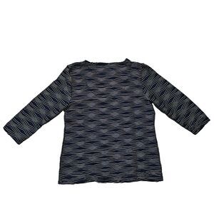 Effortlessly stylish, this JM Collection top features shimmery jacquard stripes and hardware for an instantly sleek look. Relaxed fit Scoop neckline with hardware, keyhole 3/4-sleeves Polyester/metallic/spandex Machine washable ImportedSize: Womens M Condition: New With Tags