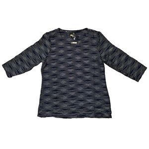 Effortlessly stylish, this JM Collection top features shimmery jacquard stripes and hardware for an instantly sleek look. Relaxed fit Scoop neckline with hardware, keyhole 3/4-sleeves Polyester/metallic/spandex Machine washable ImportedSize: Womens M Condition: New With Tags