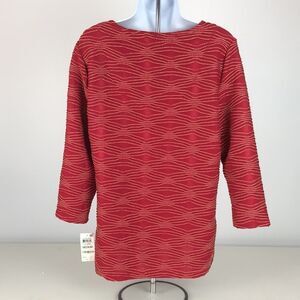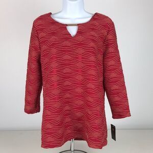 Effortlessly stylish, this JM Collection top features shimmery jacquard stripes and hardware for an instantly sleek look.